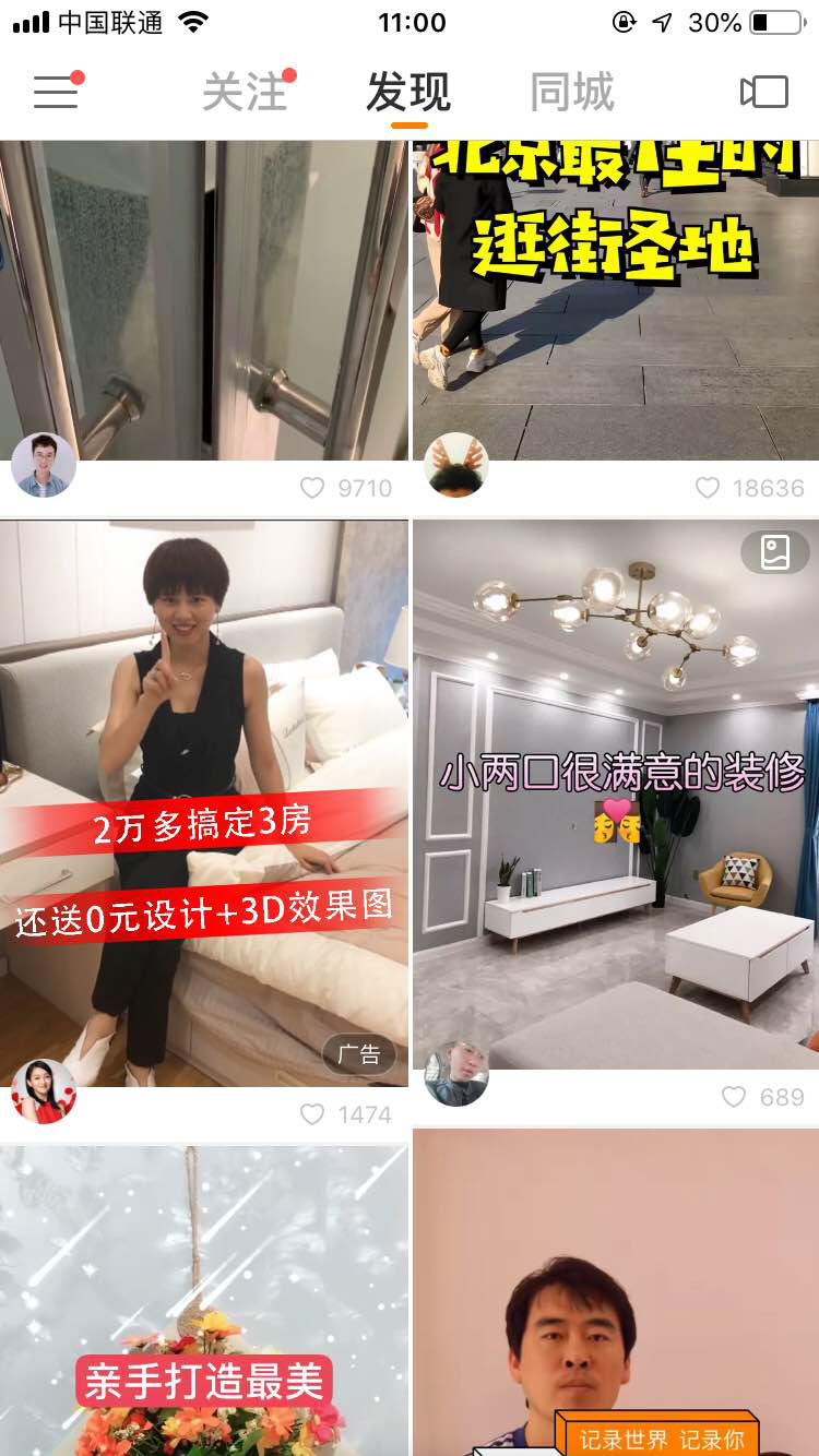 快(kuài)手信息流廣告在發現(xiàn)頁每次刷新的(de)第5或第6個(gè)視(shì)頻(pín)位中,即在用(yòng)戶每次打開(kāi)快(kuài≠)手AP或在用(yòng)戶向下(xià)拉刷出新視(shì)頻(pín)內(nèi)容的(de)時(shí)候,廣告展現(xiàn)在自(§zì)上(shàng)往下(xià)的(de)第5或第6個(gè)視(shì)頻(pín)中。為(wèi)什(shén)麽是(shì)第5或是(shì)第6,不(bù)是(shì)固定的(d®e)第5位呢(ne)?由于快(kuài)手視(shì)頻(pín)封面有(yǒu)大(dà)有(yǒu)小(xiǎo),因此廣告展現(xiàn)時(shí),也(∏yě)會(huì)根據版面的(de)需要(yào)調整展現(xiàn)位次。