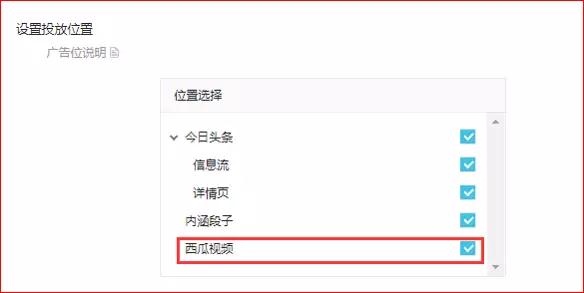 廣告主在頭條AD後台創建廣告計(jì)劃時(shí),可(kě)單獨在西(xī)瓜視(shì)頻(pín)APP投放(fàng)廣告,設置投放(fàng)位置時(shí)單獨勾選“←西(xī)瓜視(shì)頻(pín)”即可(kě),同時(shí)支持IOS以及按安卓投放(fàng)。"